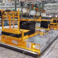 該設備廣泛運用于汽車行業前后懸架總成上線輸送和車身合裝使用,能實現前進、后退、轉彎、平移等運行方式。
