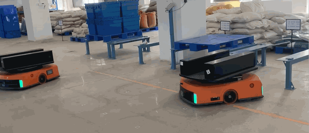 螞蟻AGV與梅花樁接駁臺對接的通道狹窄,左右兩邊僅5mm,對接精準,舉升平穩,實現高效搬運的同時,為客戶節省場地面積。