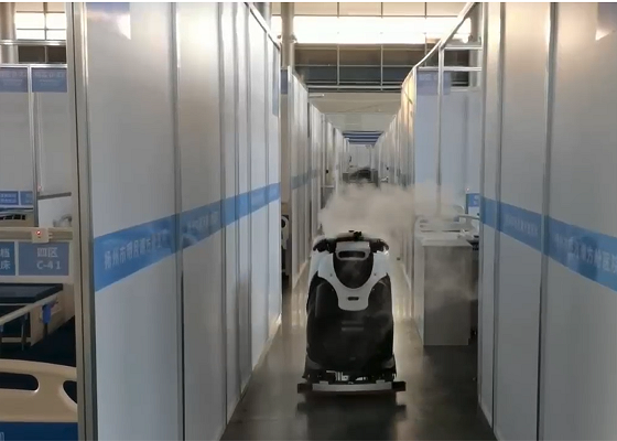 “小白,你好!請給手消消毒!”一名疫情防控工作人員路過正在工作的消毒機器人時,靠近機器伸出雙手,很快就完成了一次消毒。搭載紫外線燈、超干霧發(fā)生器和等離子空氣凈化等消毒模塊的消毒機器人,能在場館內(nèi)自由穿梭,可以24小時“不眠不休”。