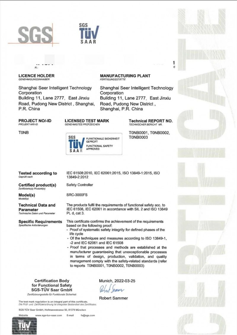 仙工智能 SRC-3000FS 由仙工智能自主研發(fā)的安全型 AMR 控制器,通過了 SGS TUV SAAR 功能安全認(rèn)證。SRC-3000FS 集激光SLAM導(dǎo)航、功能安全于一體的,是目前唯一一個通過該認(rèn)證的控制器產(chǎn)品。