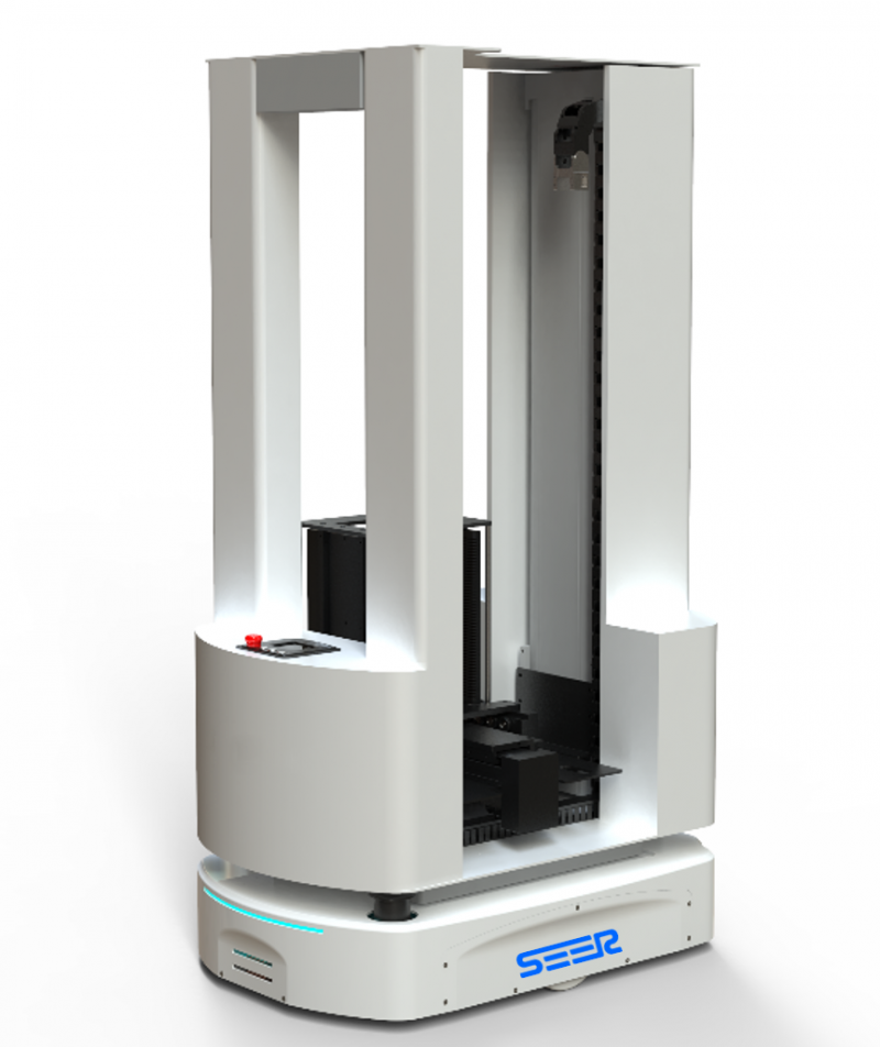 倉儲管理、物料運輸、設備對接。車體采用上海仙工智能科技激光 SLAM 導航車,內置仙工智能自主研發控制器進行運輸任務。