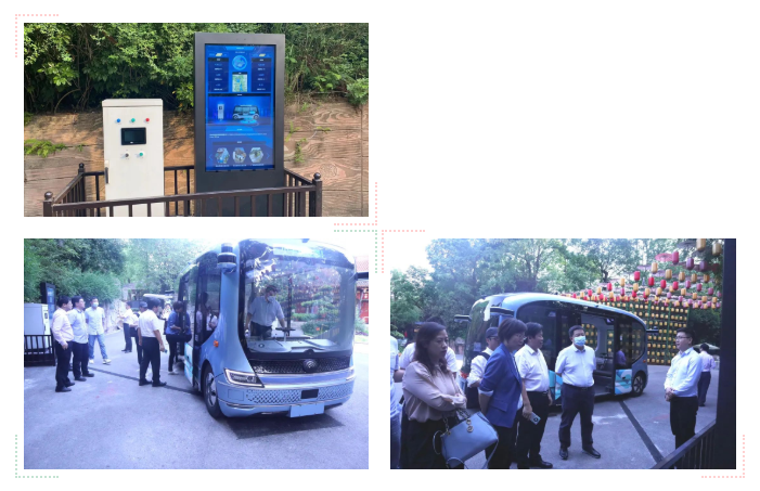 會后,雙方來到璧山秀湖公園,體驗了公司與重慶文旅集團、宇通客車股份有限公司聯合打造的重慶首輛無線充電無人駕駛觀光車。