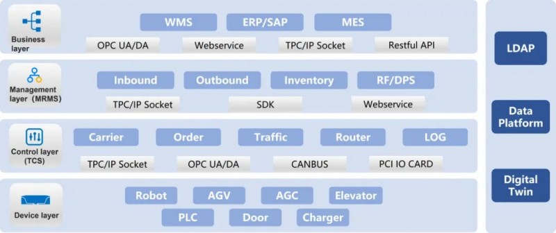 新松自主研發(fā)了強大的移動機器人控制系統(tǒng)——iMRS,不僅能實現(xiàn)復雜環(huán)境下的車體控制、邏輯調度,還能兼容客戶WMS、ERP、MES等上位系統(tǒng),實現(xiàn)與工業(yè)機器人、PLC,電梯、智能門系統(tǒng)的協(xié)同作業(yè),賦予移動機器人一顆智慧的大腦。
