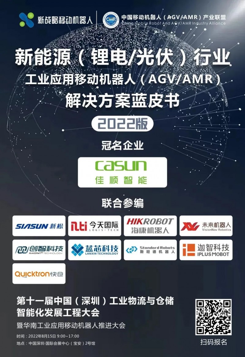 8月15日,由新松參編的《新能源行業(yè)用移動機器人(AGV/AMR)解決方案藍皮書(2022版)》也將在“中國(深圳)工業(yè)物流與倉儲智能化發(fā)展工程大會”發(fā)布,敬請期待!