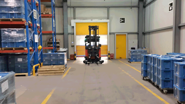 很多工廠車間的現場通道空間非常有限,轉彎半徑過大會嚴重影響搬運的效率。讓平衡重無人叉車應用在窄通道場景中,行駛通道同時對行駛與轉彎半徑做出限制,將對車體的感知和定位精度和控制能力提出極高的要求。