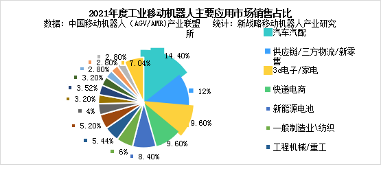 目前在國內光伏組件工廠中,實際運用AGV小車作為試點運輸的工廠有:晶科光伏,晶澳光伏,隆基光伏,中節能光伏,中南光電等,目前而言,組件工廠一般應用叉車式AGV及輥筒式較多。除以上主要生產環節外,光伏組件安裝到發電站,還會用到特殊的光伏板清洗AGV對光伏板進行維護。根據中國移動機器人(AGV/AMR)產業聯盟數據、新戰略移動機器人產業研究所統計,2021年光伏市場占工業應用移動機器人整體銷售市場的5.2%,銷售量約為3500臺,規模為6億元。