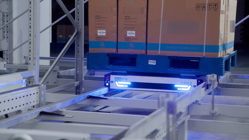 運行于縫紉機成品“智能密集庫”中的曠視四向穿梭車