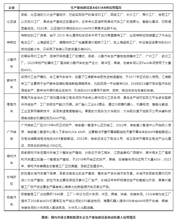 9大新能源車企內部AGV/AMR應用情況