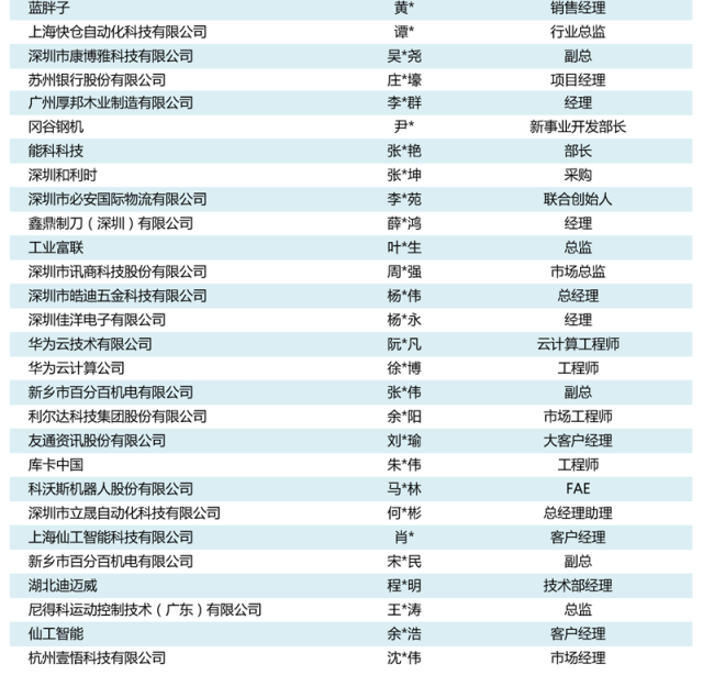 第十二屆制造業(yè)物流與倉儲(chǔ)智能化工程大會(huì)”第三批200人參會(huì)名單