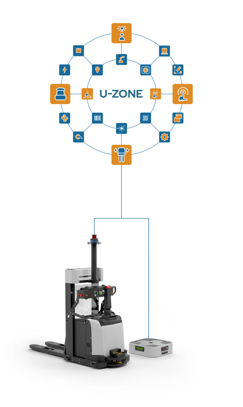 近期,科爾摩根AGV還對外推出了U-Zone軟件開發工具包(SDK),對于有著AGV定制化需求的用戶,U-Zone可作為一種靈活的解決方案,利用現代化的編程環境在科爾摩根AGV的車輛控制器上構建應用程序,使之能夠運行與NDC8并行執行的定制應用程序,包括與外部設備通信的接口程序、診斷應用程序以及提升負載處理的應用程序等。