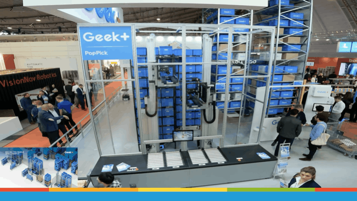 德國LogiMAT2023國際物流展覽會圓滿落幕。極智嘉攜多款明星方案集結亮相:RoboShuttle全柔性貨箱方案(RS+P40)、新一代貨架到人揀選方案PopPick、智能升降分揀機器人S20C-A與智能搬運機器人M200C,為歐洲提供了適配多場景的內部物流解決方案