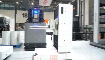 ??禉C器人本次展會上還推出了鋰電行業極卷搬運自動化解決方案,移載系列懸臂機器人全向移動底盤,高精度對接(精度可達±2mm),支持3D立體避障,實現多重安全閉環防護。