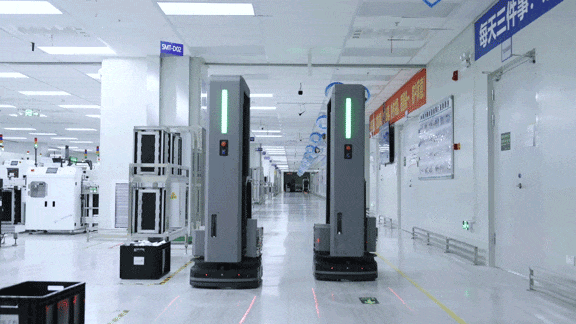 這座電子產品智慧工廠由海康機器人和深科技聯手打造。通過部署智能倉儲及廠內物流解決方案,助力客戶落實智能倉儲以及智慧物流領域的前瞻性布局,在面對智能手機飛速更迭時能夠快速調整生產策略,按工單完成原材料的高效揀選,并及時配送至指定產線,實現企業自動化升級與降本增效的雙贏結果。