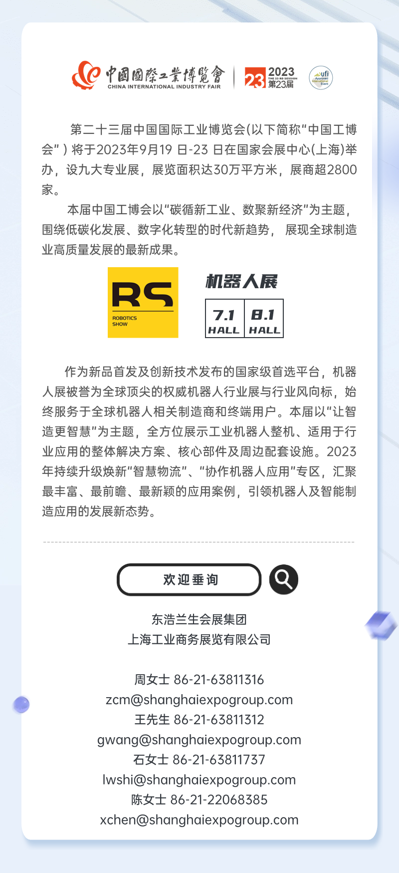 核心提示:2023工博會機器人展2023年9月19-23日 7.1H8.1H三年磨一劍,新機出鞘拼絕活機器人+時代,看機器人全明星強大陣容精彩演繹最前沿領