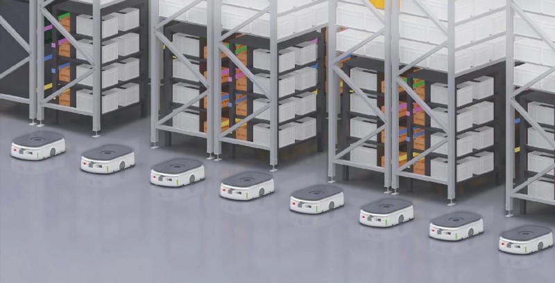 下揀:使用潛伏式AGV+POD料架的形式來實(shí)現(xiàn)揀選物料的快速出入庫和預(yù)分揀暫存,充分發(fā)揮潛伏式AGV快速靈活的搬運(yùn)特點(diǎn),實(shí)現(xiàn)從高位倉庫到揀選位/出入庫站點(diǎn)的接駁搬運(yùn)。
