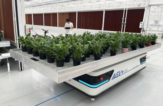 2022年9月,天津市東信花卉有限公司二期溫室項目引入無人駕駛車輛輔助物料運輸。使用二維碼導航的AGV小車進行花卉、水肥和其他物料的傳送。與之類似,2022年9月投產陸家鎮A+溫室工場和今年6月投入使用的淮安市清江浦區現代農業產業示范園均使用了AGV小車進行物料運輸。