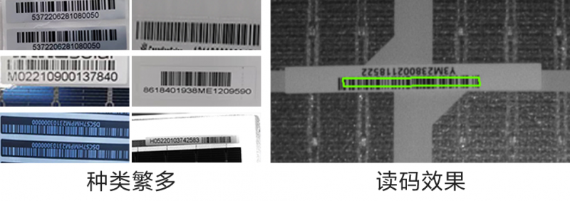 組件層壓前工序,需透過毛玻璃、EVA膜讀碼,兩者材質(zhì)導(dǎo)致條碼畸變嚴(yán)重。