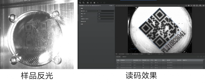 需求:電池片的質(zhì)量追溯,讀取電池片上絲印的二維碼,由于絲印痕跡較淺肉眼基本不可見,讀碼后上傳MES系統(tǒng)實(shí)現(xiàn)每個(gè)電池片的追溯管理。
