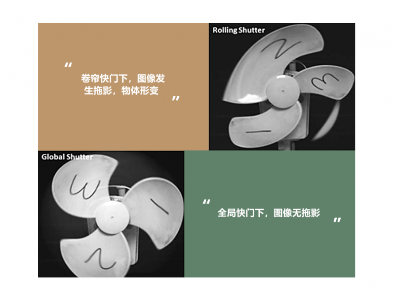 采用全局快門技術,相機可實現高速的快門效率和角度響應,避免了傳統的卷簾快門技術帶來的圖像失真和運動模糊。在高精度檢測應用中可以有效緩解由于機臺抖動和被測物移動帶來的成像問題。