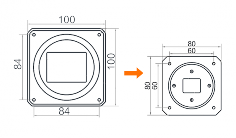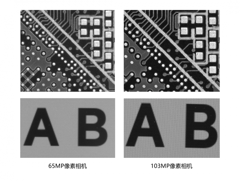 相較于現有1.01億相機,全新1.03億相機整體尺寸縮小至80*80 mm,架設難度大幅下降,并且采用M58標準鏡頭接口,可轉接F接口使用,支持從千萬級像素相機直接升級,在不換鏡頭的條件下,升級視野尺寸。