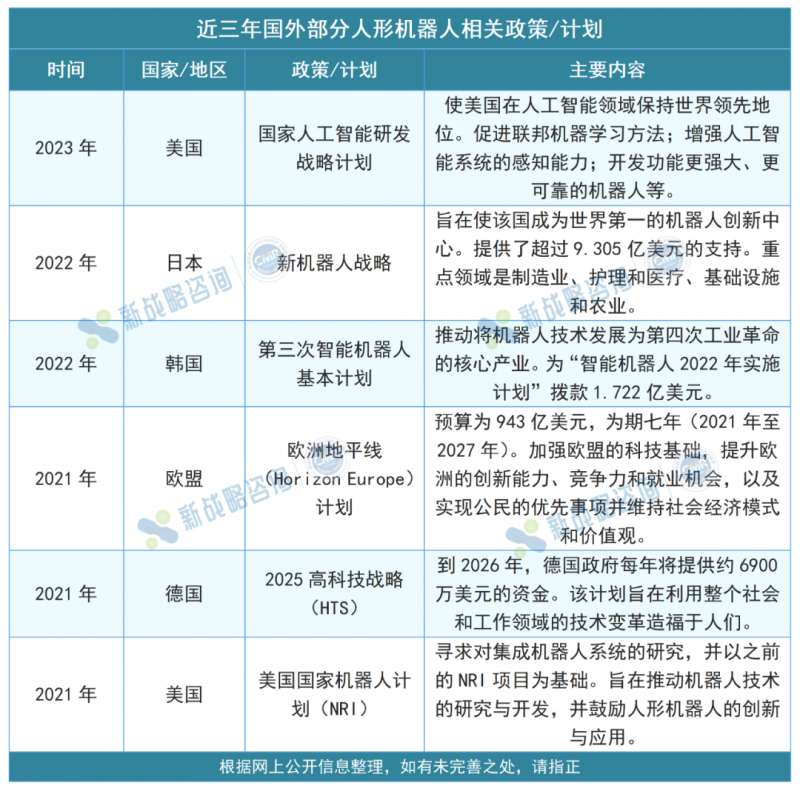 人形機器人作為一個新興產業,各國政府都在積極出臺相關政策和措施,以促進其發展。中國和國外政府在人形機器人產業支持政策上有一些相似之處,如資金支持、制度保障等方面。當然,也存在一些差異,如中國政府更加注重產業引導基金和人才培養方面的支持,國外政府則更加注重人形機器人產品的應用推廣。