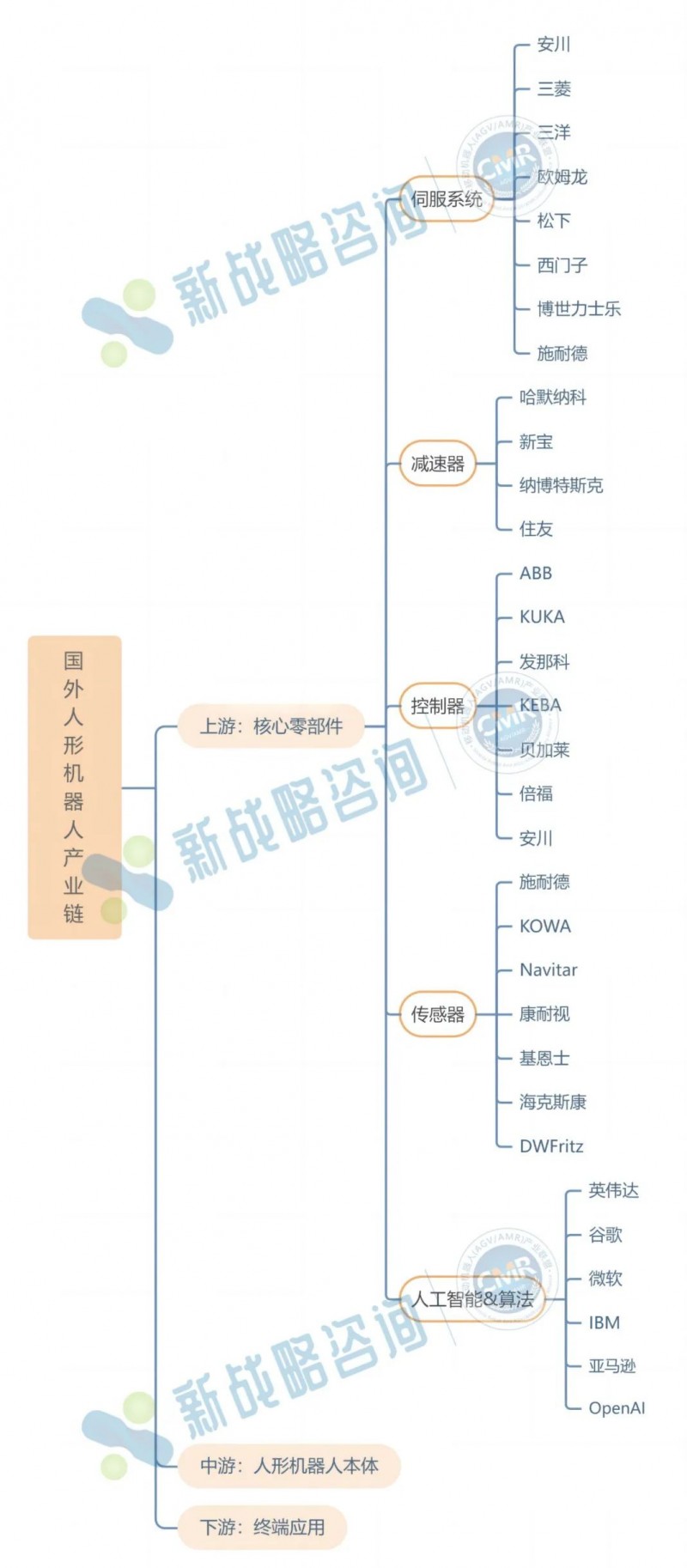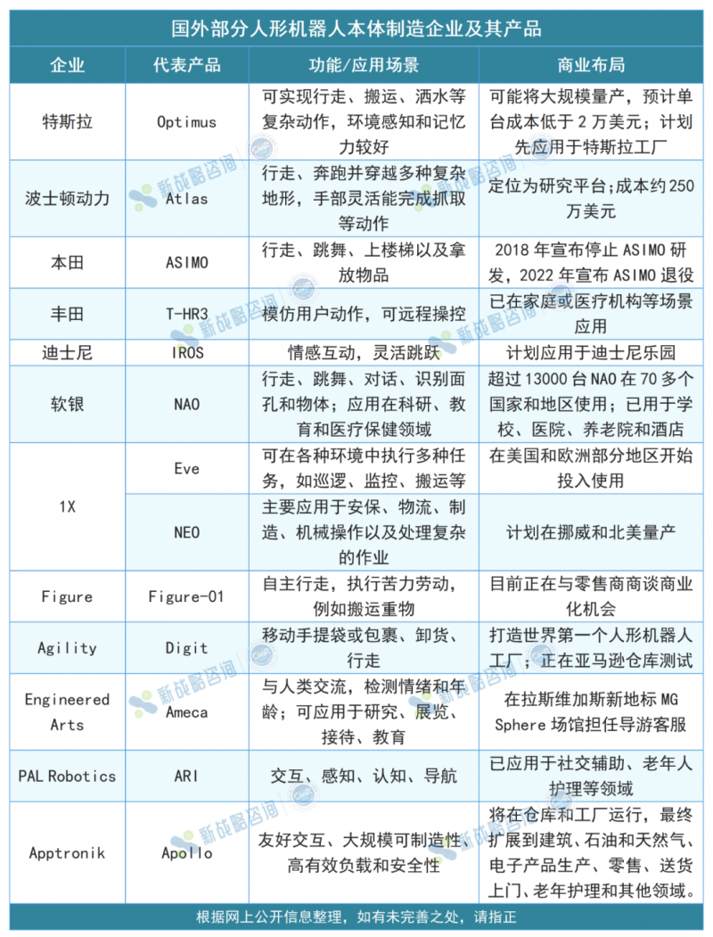 人形機器人與工業機器人、新能源汽車等產業共享許多相似的供應鏈,如電池、芯片、傳感器、控制器等,可以實現供應鏈的協同遷移。國外人形機器人產業鏈在技術研發、供應鏈完善度和市場推廣方面相對更加成熟和領先。而作為制造業強國,中國具有獨立的工業制造體系和產業鏈,為量產人形機器人打下了基礎。