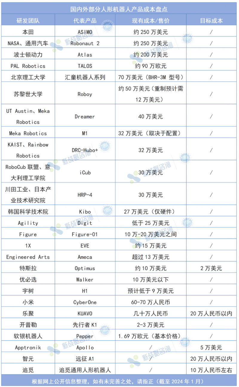 而放眼國內(nèi),小米、宇樹、樂聚等公司也透露,其人形機(jī)器人產(chǎn)品的單臺(tái)造價(jià)也高達(dá)幾十萬到上百萬人民幣…
