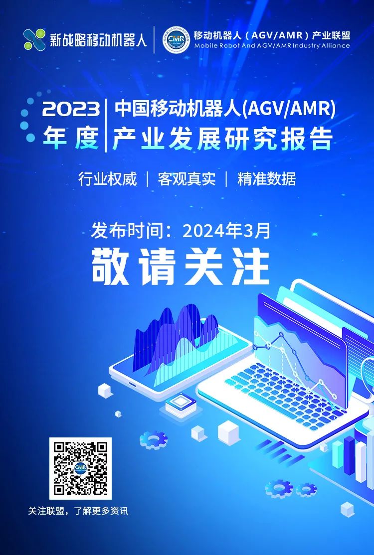 2024年3月,《2023年度中國移動機器人(AGV/AMR)產業發展研究報告》將正式發布,報告將對2023年中國移動機器人行業發展現狀做出全面解讀,包括市場規模、細分產品及細分行業特點、供應鏈現狀、出海情況等。同時,《2024全球移動機器人(AGV/AMR)產業發展報告》也將在6月發布,敬請期待!