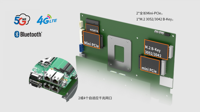 ² 1*M.2 3052/3042 B-Key,帶SIM卡槽,帶PCIeX1和USB2.0信號(hào),支持5G NR模塊