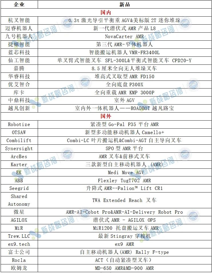 圖表:一季度國(guó)內(nèi)外AGV/AMR企業(yè)新產(chǎn)品(根據(jù)公開(kāi)信息整理,如有遺漏,請(qǐng)指正!)