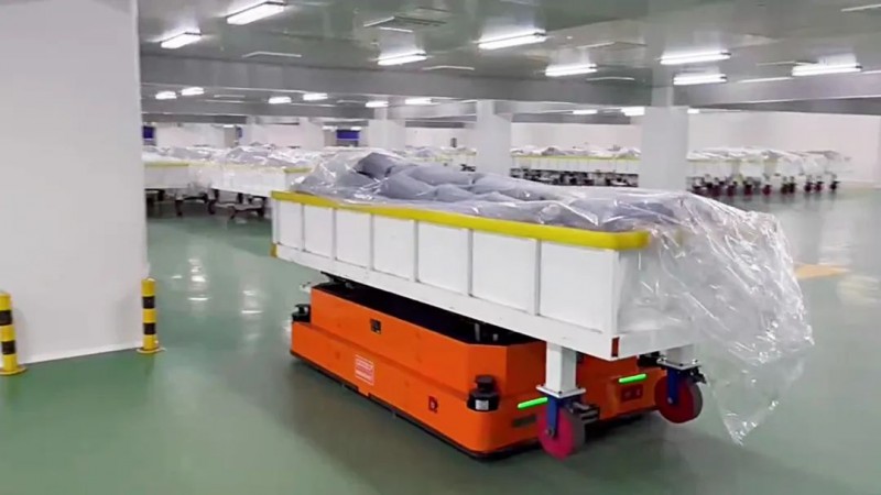 在某光伏項目新建廠房中,一邊建廠,一邊安裝調(diào)試,安裝一片區(qū)域爐臺,便上線一片區(qū)域AMR。投入潛伏AMR和重載AMR,結(jié)合RCS機(jī)器人控制系統(tǒng),實現(xiàn)上料實時追溯和成品晶棒實時轉(zhuǎn)運(yùn)。