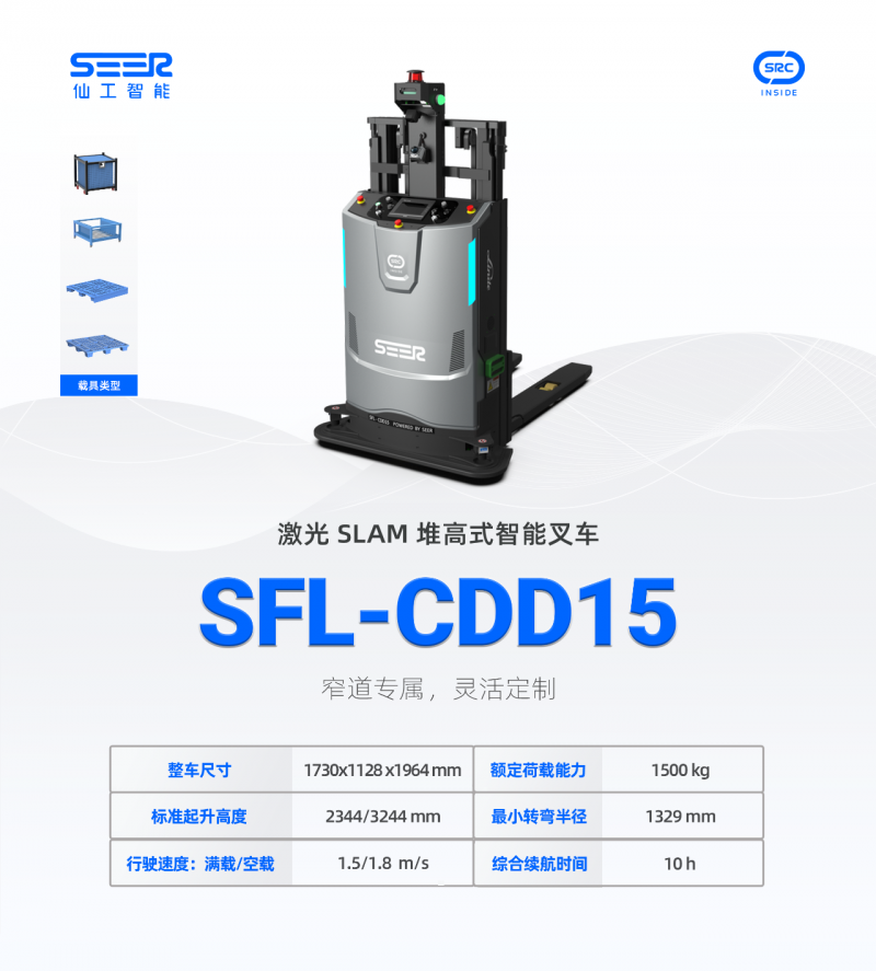 SFL-CDD15 基于林德車體打造,內(nèi)置仙工智能 SRC 控制器,產(chǎn)品競爭力 Next Level。
