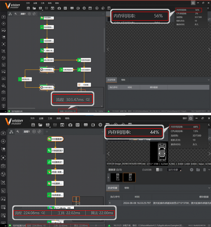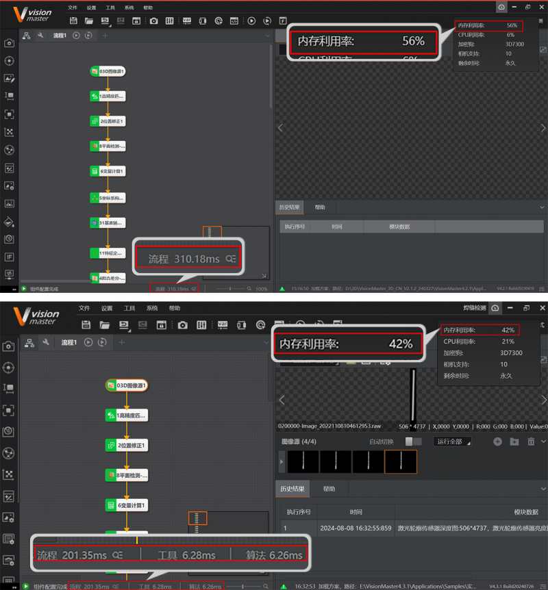 從下面兩個項目檢測案例中,可以明顯看到軟件升級后性能的顯著提升。在內存利用率方面實現了最高23.21%的降幅,大大優化了資源管理;在流程耗時上,最高減少了70多毫秒的處理時間。這些優化措施共同提高了現場工作的整體效率,確保了操作的流暢性和響應速度,為用戶帶來了更加高效和穩定的使用體驗。