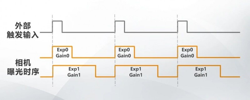 相機(jī)支持多重曝光功能(Multi Exposure),可支持自定義設(shè)置2組曝光時(shí)間及增益,適用于明暗場(chǎng)的檢測(cè)場(chǎng)景。