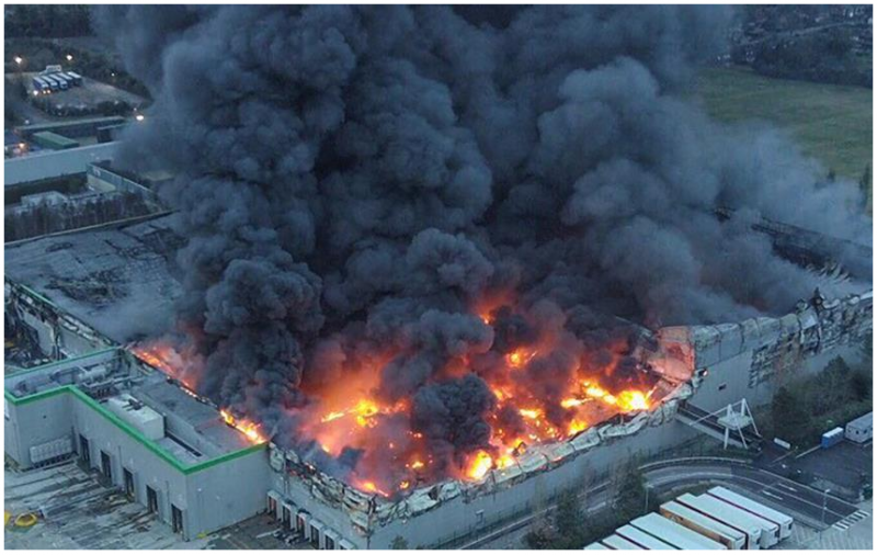 2019年,英國最大生鮮電商Ocado位于漢普郡的全自動立體倉庫發生火災,近200名消防隊員和20多輛消防車參與救援,火災最終造成近1.37億美元損失。事后,漢普郡消防局的報告顯示,火災起因是倉儲機器人在充電過程中產生電弧引發。