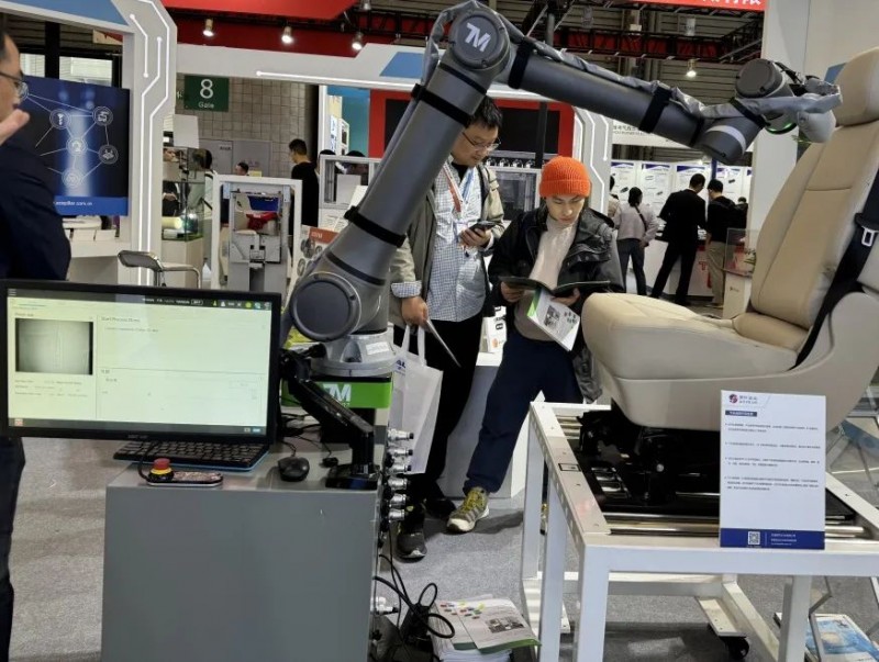 在慕尼黑電子生產(chǎn)設(shè)備展(Productronica China)的現(xiàn)場,達明機器人合作伙伴所展示的汽車座椅外觀檢測應(yīng)用,充分彰顯了視覺飛拍技術(shù)在外觀瑕疵檢測方面的優(yōu)勢。