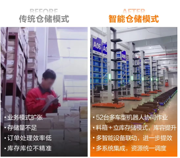 隨著業(yè)務(wù)規(guī)模擴(kuò)張,傳統(tǒng)倉(cāng)儲(chǔ)模式的局限逐漸顯現(xiàn),存儲(chǔ)量不足、訂單處理效率低、庫(kù)存庫(kù)位不精準(zhǔn)的問(wèn)題顯現(xiàn),多車(chē)型協(xié)同作業(yè)、多智能設(shè)備場(chǎng)景適配、復(fù)雜系統(tǒng)集成等技術(shù)難題,成為宏賢達(dá)物流升級(jí)的關(guān)鍵挑戰(zhàn)。