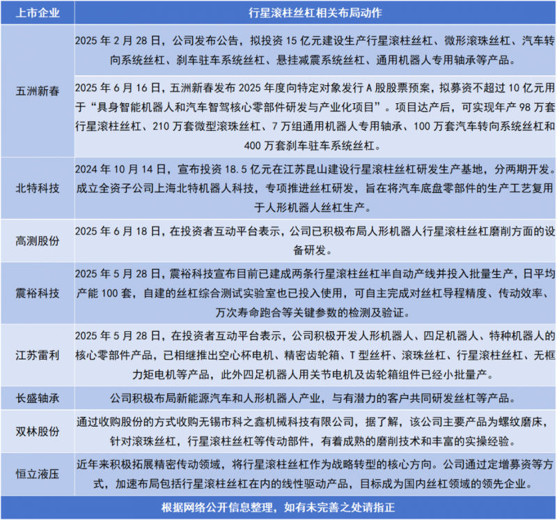 近日,五洲新春、雙林股份、震裕科技、北特科技、長(zhǎng)盛軸承等多家零部件上市公司都在加速布局轉(zhuǎn)型行星滾柱絲杠領(lǐng)域,相關(guān)企業(yè)合計(jì)規(guī)劃投資金額已超過(guò)60億元。