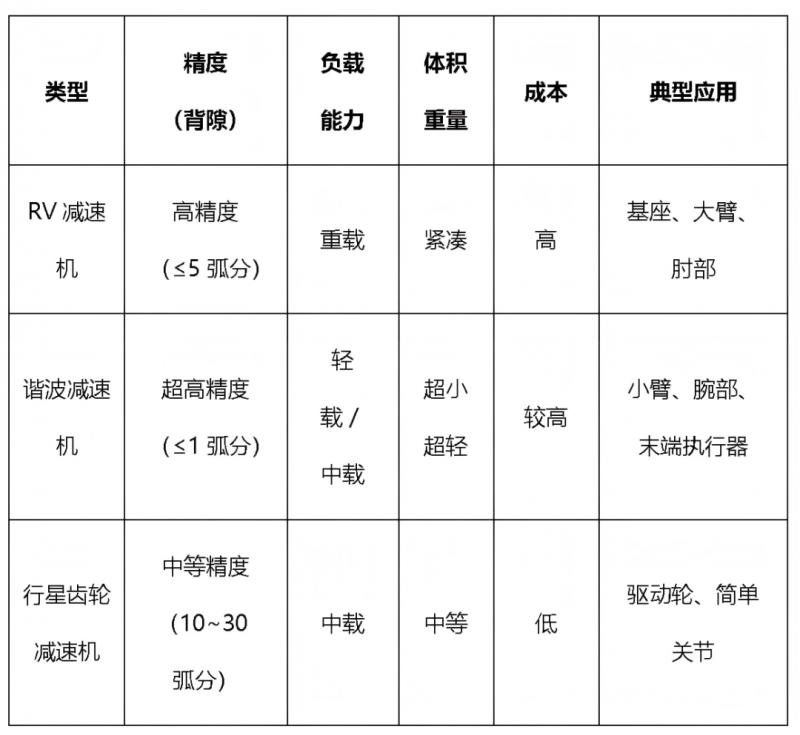 ▲ 不同類型減速機(jī)性能特點(diǎn)