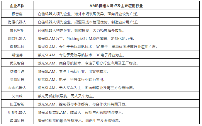圖表2:國內市場主要做AMR機器人的企業(部分代表)