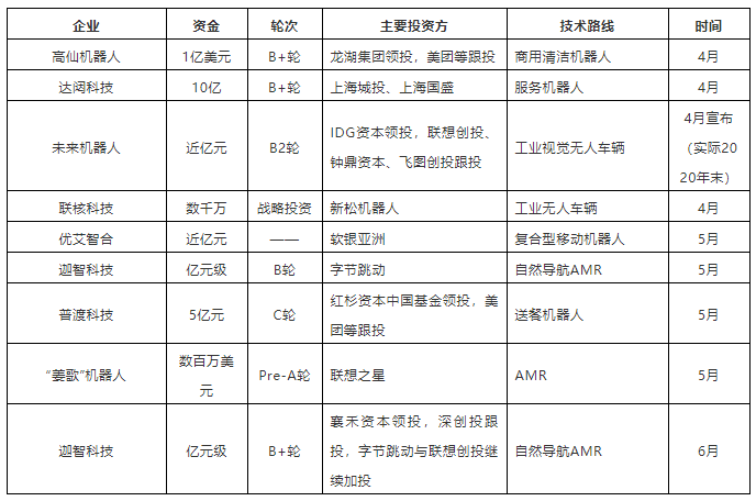 除工業(yè)應(yīng)用移動(dòng)機(jī)器人外,二季度獲得融資的還有聚焦于清潔機(jī)器人應(yīng)用的高仙、云端服務(wù)機(jī)器人企業(yè)達(dá)闥科技以及送餐機(jī)器人企業(yè)普渡科技,疫情原因,商用移動(dòng)機(jī)器人落地速度加快,經(jīng)過(guò)前期的落地應(yīng)用,部分技術(shù)成熟的企業(yè)脫穎而出,也得到了資本方的認(rèn)可。