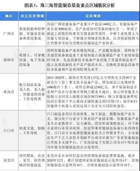 珠三角地區(qū)的智能制造裝備業(yè)主要分布在廣州、深圳、珠海和江門等地。其中,廣州市是國(guó)內(nèi)最大的大中型集裝箱船和特種船建造基地;江門市是未來(lái)軌道交通行業(yè)領(lǐng)域的重要基地,珠海市依托珠海機(jī)場(chǎng)而建的珠海航空產(chǎn)業(yè)園涵蓋了航空制造業(yè)、服務(wù)業(yè)和臨空產(chǎn)業(yè),是廣東省發(fā)展通用航空制造、維修及運(yùn)營(yíng)服務(wù)產(chǎn)業(yè)的唯一載體,已形成了“珠海航展”的知名會(huì)展品牌;深圳市正著力建設(shè)華南地區(qū)數(shù)控系統(tǒng)技術(shù)研究開(kāi)發(fā)中心,大力發(fā)展工業(yè)機(jī)器人和機(jī)械手的研發(fā)與生產(chǎn)。