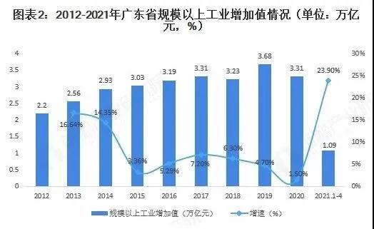 2021年1-4月,廣東規(guī)模以上工業(yè)增加值1.09萬(wàn)億元,同比增長(zhǎng)23.9%,兩年平均增長(zhǎng)5.5%。