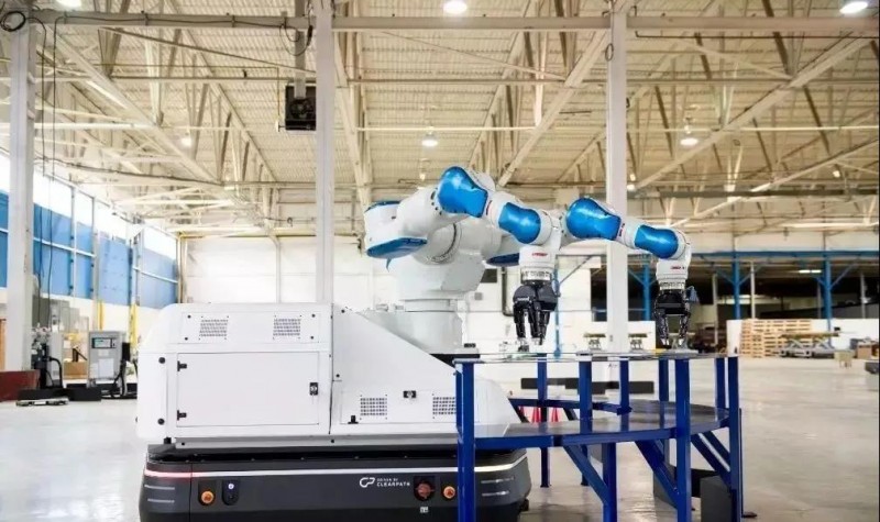 而發(fā)那科則選擇與安吉智能攜手, 2018年,雙方聯(lián)合推出了具有區(qū)域移動能力的協(xié)作機(jī)器人,將各自在智能AGV技術(shù)與協(xié)作機(jī)器人領(lǐng)域的優(yōu)勢相結(jié)合,突破常規(guī)機(jī)器人只能在導(dǎo)軌上作直線運(yùn)動的限制、區(qū)域移動小車在行駛過程中存在的安全隱患、移動后再定位精度低的問題。同時,借助機(jī)械臂內(nèi)置的工業(yè)相機(jī),以及AGV小車中的電池及逆變電流器,讓AGV小車可以自由載著機(jī)械臂到達(dá)指定工位,進(jìn)行產(chǎn)品的精密的定位和抓取,極大地拓展了機(jī)械臂與AGV小車的適用范圍。