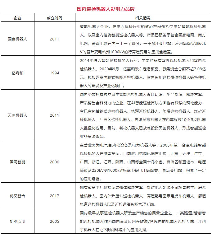 在中國,國家電網(wǎng)公司于 2002 年成立了電力機(jī)器人技術(shù)實(shí)驗(yàn)室,主要開展電力機(jī)器人領(lǐng)域的技術(shù)研究。2004 年,研制成功第一臺(tái)功能樣機(jī),后續(xù)在國家“863項(xiàng)目”支持和國家電網(wǎng)公司多方項(xiàng)目支持下,研制出了系列化變電站巡檢。2013年,變電站巡檢機(jī)器人首次進(jìn)入國網(wǎng)招標(biāo)目錄,此后,巡檢機(jī)器人市場(chǎng)開始進(jìn)入全面推廣階段。