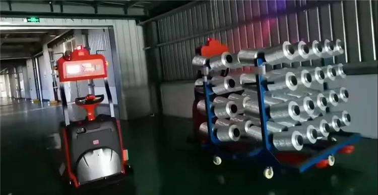 曹睿表示,紡織業(yè)的物料搬運(yùn)較為復(fù)雜。其原料、成品和半成品體積大,密度小,組織蓬松柔軟,形態(tài)不穩(wěn)定。在各工序之間搬運(yùn)時(shí),輕微的碰撞和摩擦都有可能造成外形損傷。此外大多物料都需要卷裝運(yùn)輸,這些卷裝載具,都需要特殊定制。基于紡織業(yè)物料及載具的特殊性,叉車(chē)式AGV需要確保運(yùn)行的穩(wěn)定性及定位的精確度,叉車(chē)AGV的支腿需要進(jìn)行特殊定制,匹配卷裝載具。