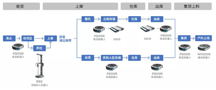3.多機混合調度、串聯作業,大幅減少了員工走動、找貨和搬運的時間,極大提升了工作效率,降低揀選出錯率,更減輕了人員勞動強度和工作時長,人員管理更省力。