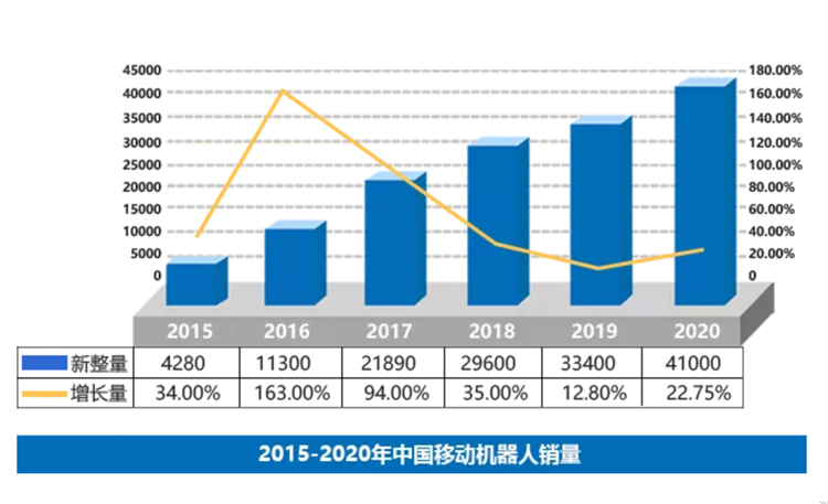 根據(jù)新戰(zhàn)略機器人產(chǎn)業(yè)研究所統(tǒng)計,中國移動機器人近三年的累積銷量已經(jīng)超過10萬臺,中國工業(yè)應用移動機器人2015~2020年銷量如下圖