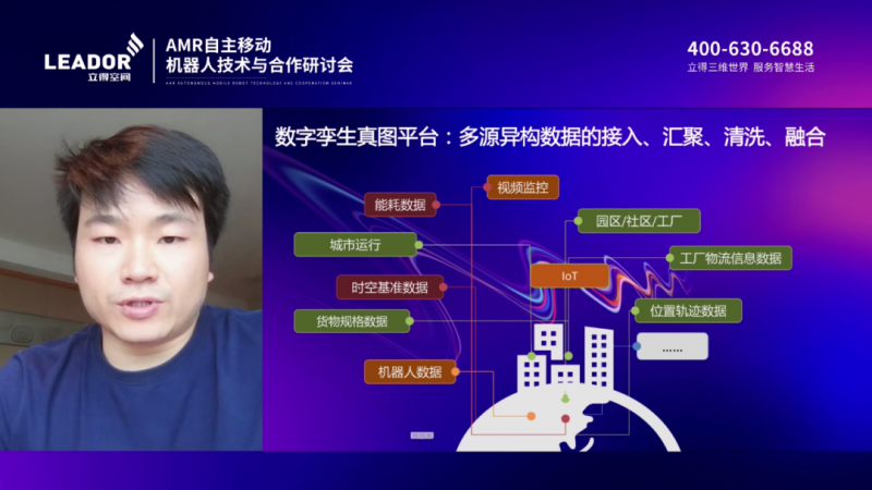 立得空間智慧城市事業(yè)部技術(shù)總監(jiān)黃杰詳細(xì)介紹了“三維高精地圖+機(jī)器人”技術(shù)架構(gòu)。他提到,立得空間研發(fā)的“真圖“數(shù)字孿生時(shí)空數(shù)據(jù)服務(wù)平臺”基于實(shí)景三維、高精地圖、物聯(lián)網(wǎng)、仿真、AI、空間網(wǎng)格碼等關(guān)鍵技術(shù),可接入海量多維數(shù)據(jù)、進(jìn)行匯聚、清洗、融合、管理及可視化,快速構(gòu)建數(shù)字孿生時(shí)空大數(shù)據(jù)底座。