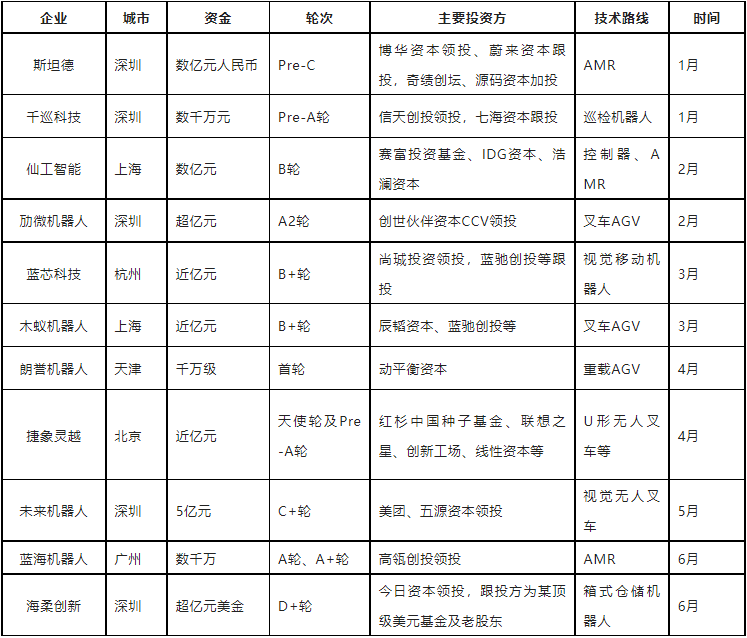 從資金投入來看,大部分企業(yè)融資金額都在億元級以上,其中,海柔創(chuàng)新與未來機(jī)器人兩家企業(yè)在上半年拿到了行業(yè)最多的融資。